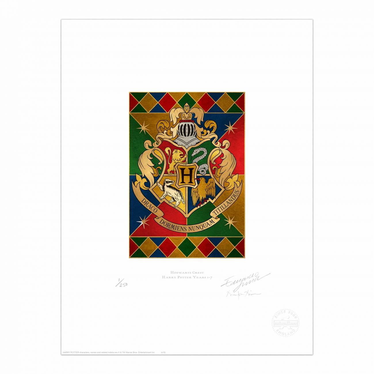 Celebrate your wizarding school pride with our metallic button badge featuring the Hogwarts crest. With a safety pin back for fastening to clothes and bags, this button badge is inspired by the authentic graphic prop designed by MinaLima for the ‘Harry Potter’ film series.